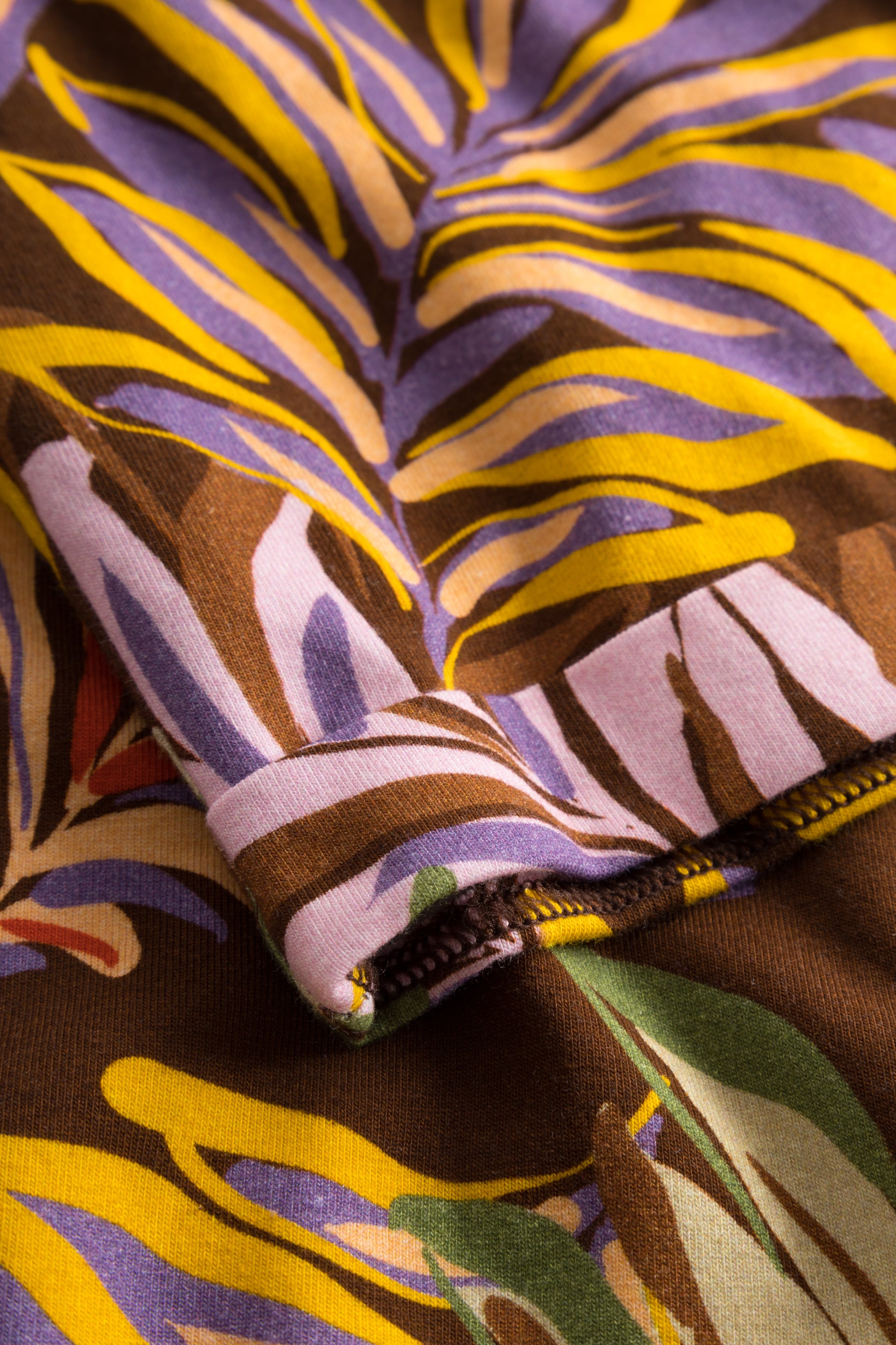 7/8-Hose im bunten Blätterdruck mit Taschen und Umschlag am Saum.