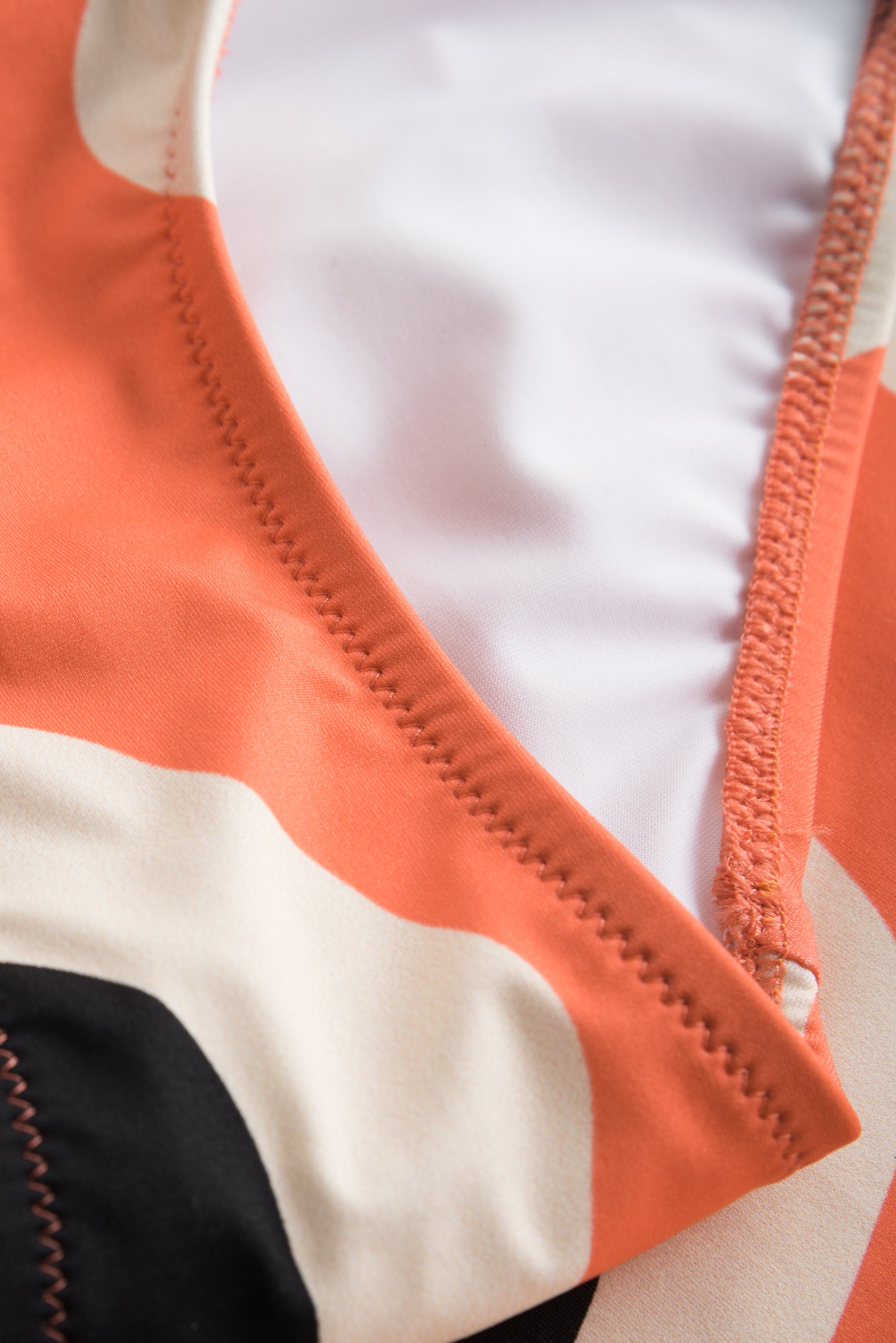 Das Circle Design mit schwarzen und cremefarbenen Minimal-Print Einsätzen besticht durch seinen geraden Ausschnitt mit Bügeln, Unterbrustband sowie den abnehmbaren und verstellbaren Trägern.