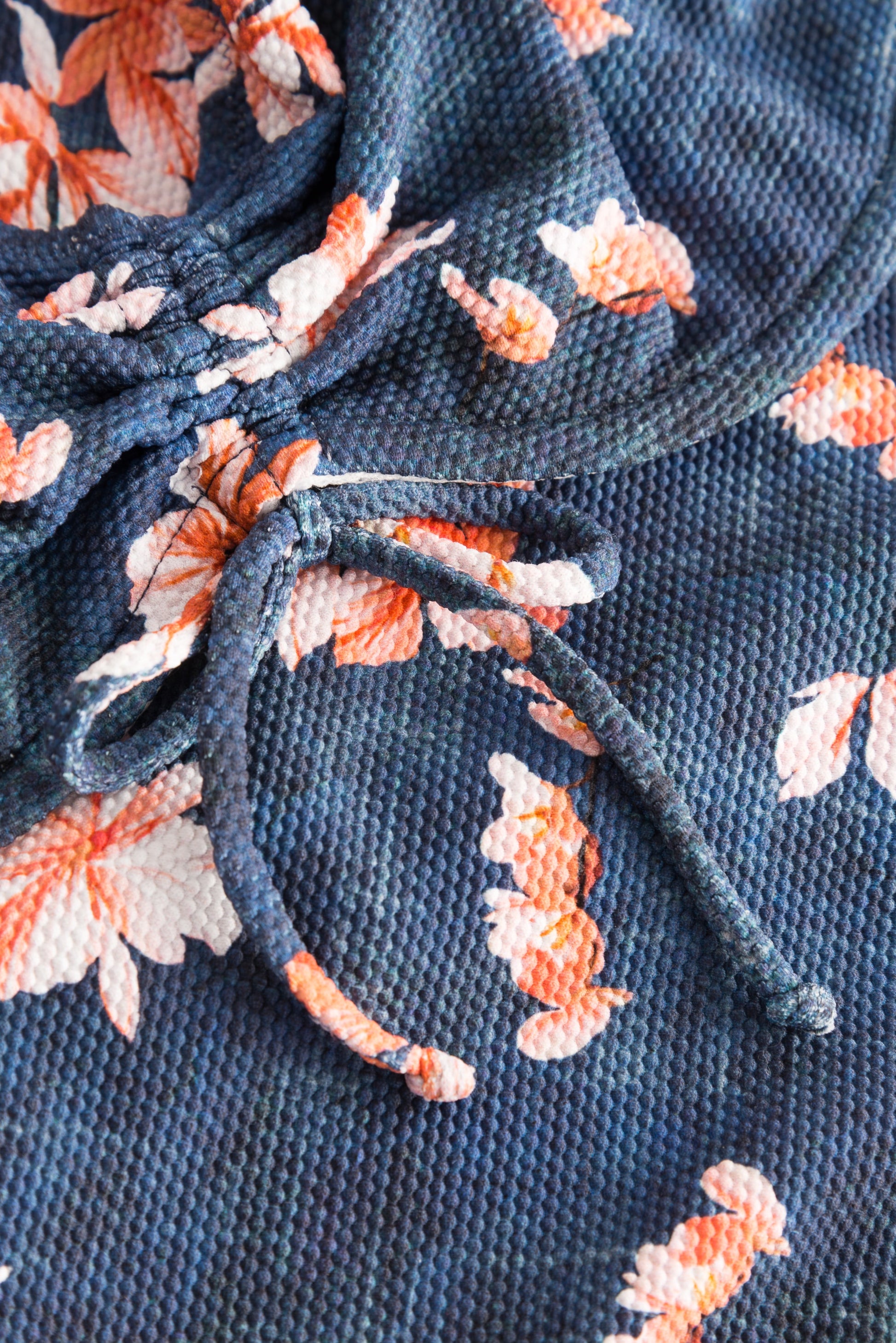 Das Bikini-Set zum Raffen unterstreicht den femininen Charakter der Struktur mit Denim-Optik und floralen Elementen. Zudem verfügt das Bikini-Oberteil Bügel sowie verstellbare Träger.