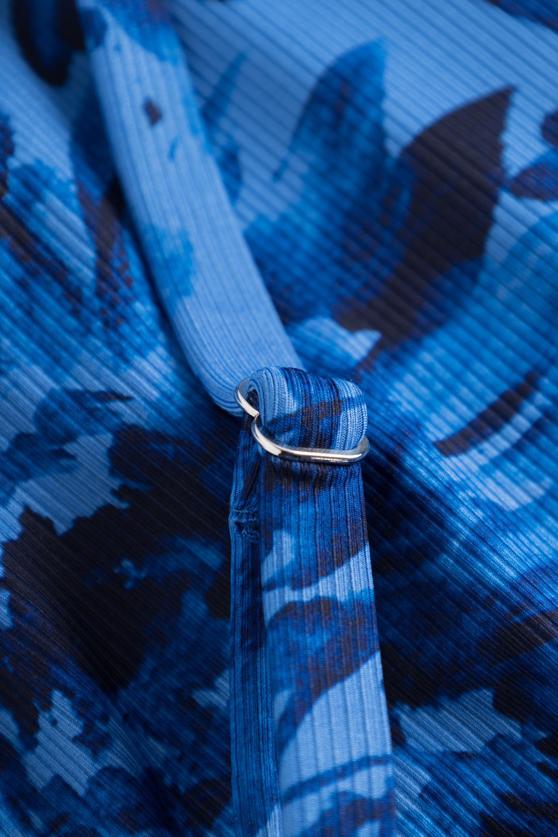 Die schmeichelnde Wickeloptik am Ausschnitt unterstreicht den femininen Charakter des floralen Drucks auf feiner Ripp-Struktur. Zudem verfügt der Bikini über Bügel sowie verstellbare Träger.