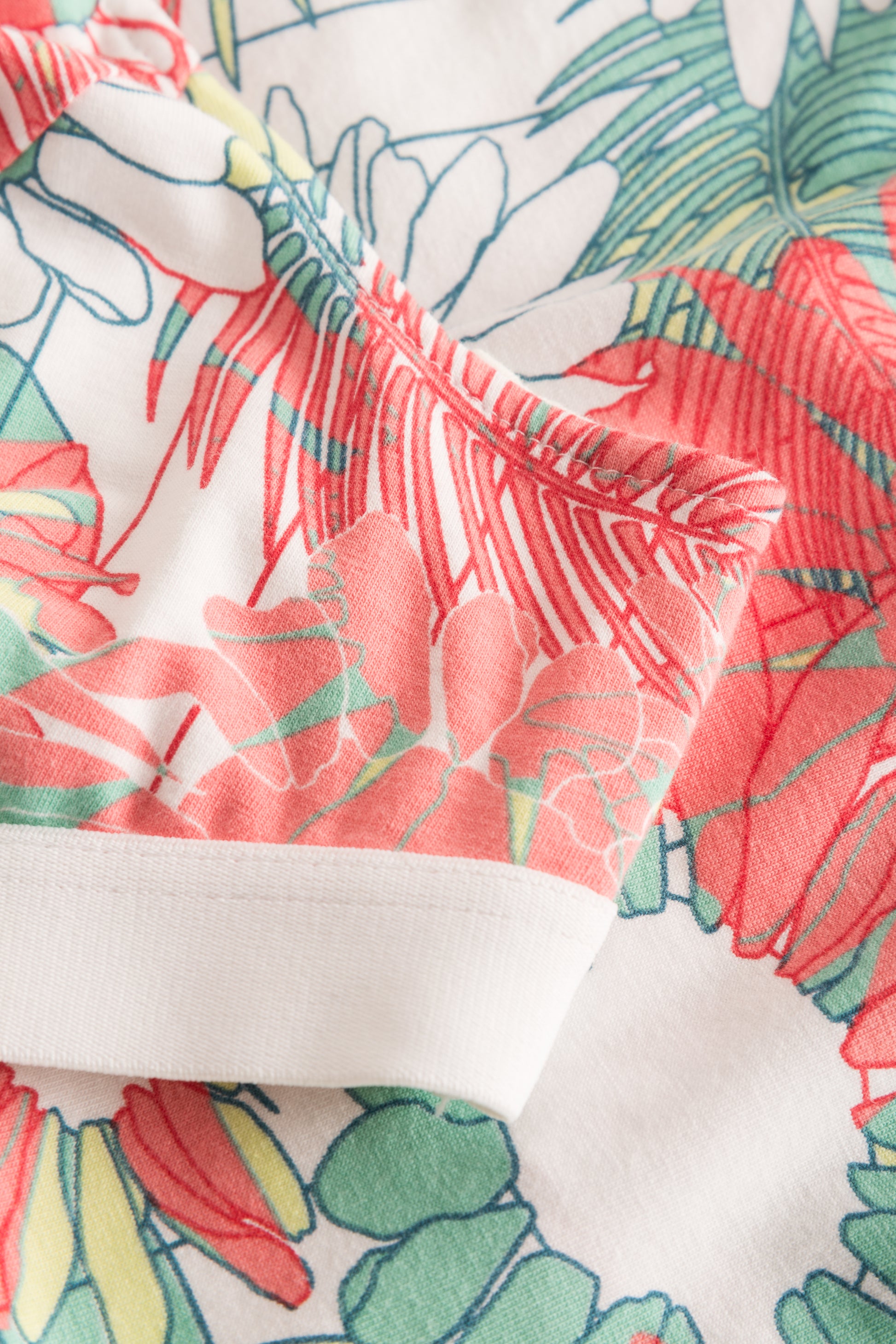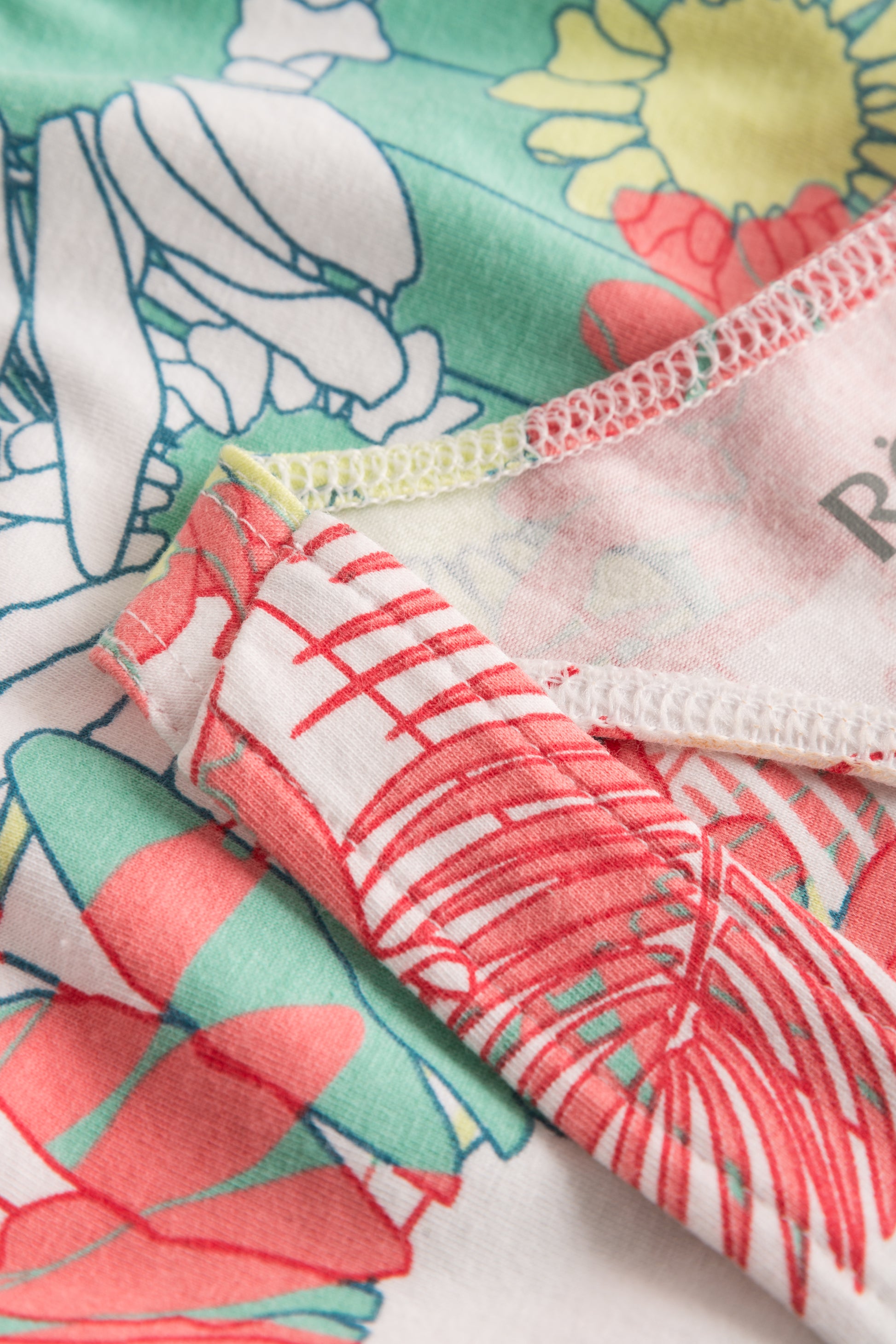 Das Design besteht aus Baumwolle-Elasthan und wird von einem bunten Blumenprint mit Streifen akzentuiert. Das Bustier besitzt Teilungsnähte für die Form sowie ein Unterbrustgummi.