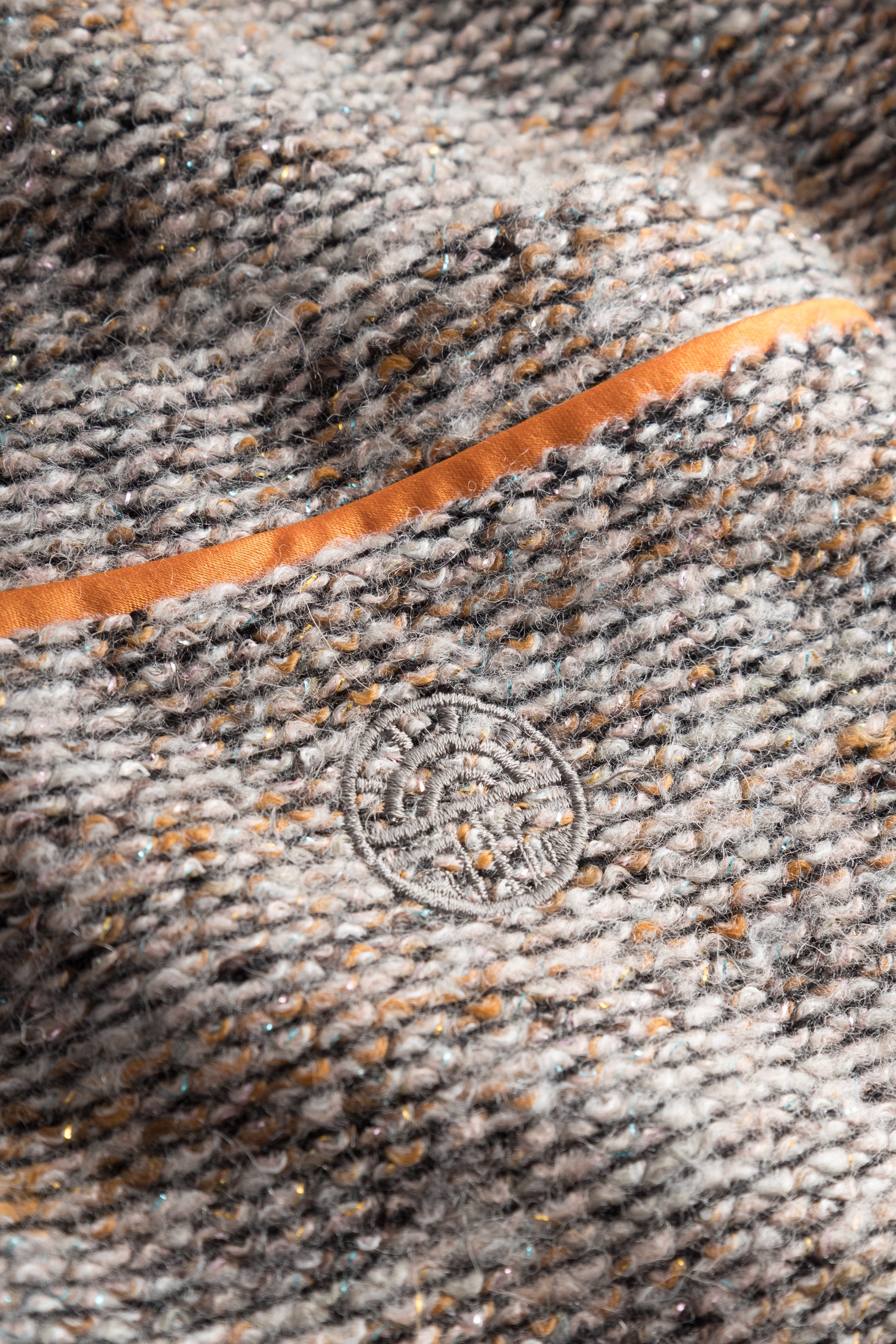 Stylisches Cape aus kuscheligem Strick im locker geschnittenen Look. Die schräg aufgesetzten Taschen mit kontrastfarbigen Satinpaspeln betonen den lässigen Stil.
