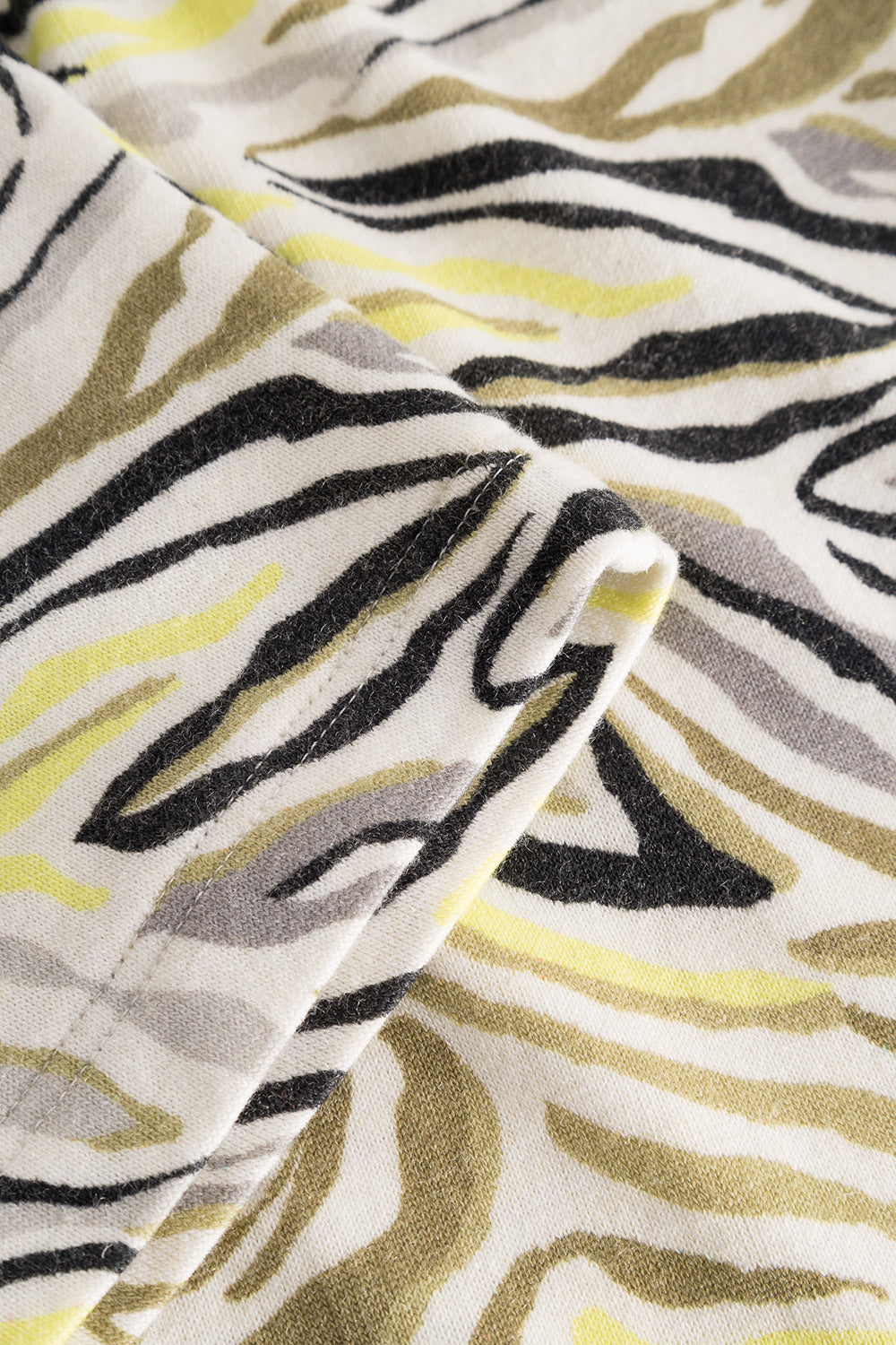 Lässig, gerade geschnittene Hose in trendstarkem Animal-Print und modischer Colorierung aus einer angenehm zu tragenden Strickqualität. Der breite Komfortbund mit Bindeband und die seitlichen Eingrifftaschen bieten optimale Bequemlichkeit.