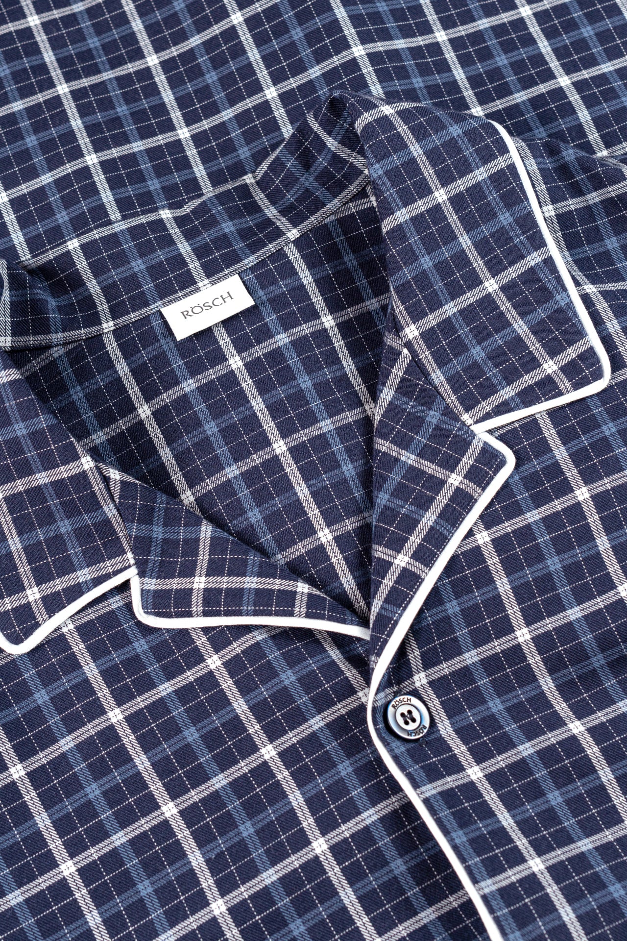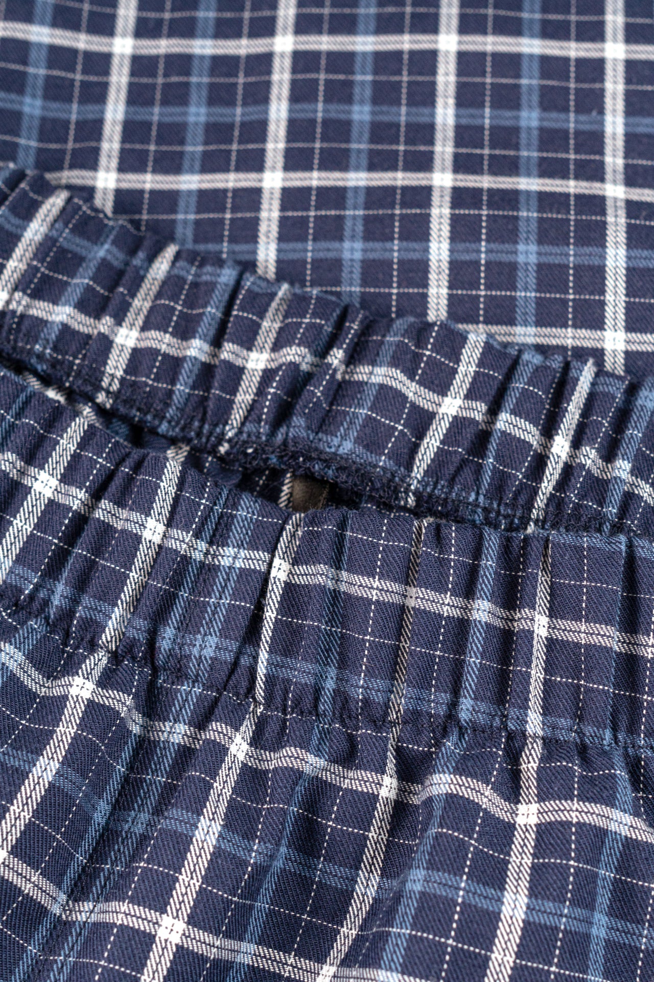 Klassischer Pyjama im Karo-Druck für Herren. Das Oberteil im Herrenhemd-Schnitt mit Reverskragen, Knopfleiste, aufgesetzter Brusttasche und edlen Paspeln ist im eleganten Stil gehalten. Die gerade Hose mit Gummibund sorgt für Bequemlichkeit.