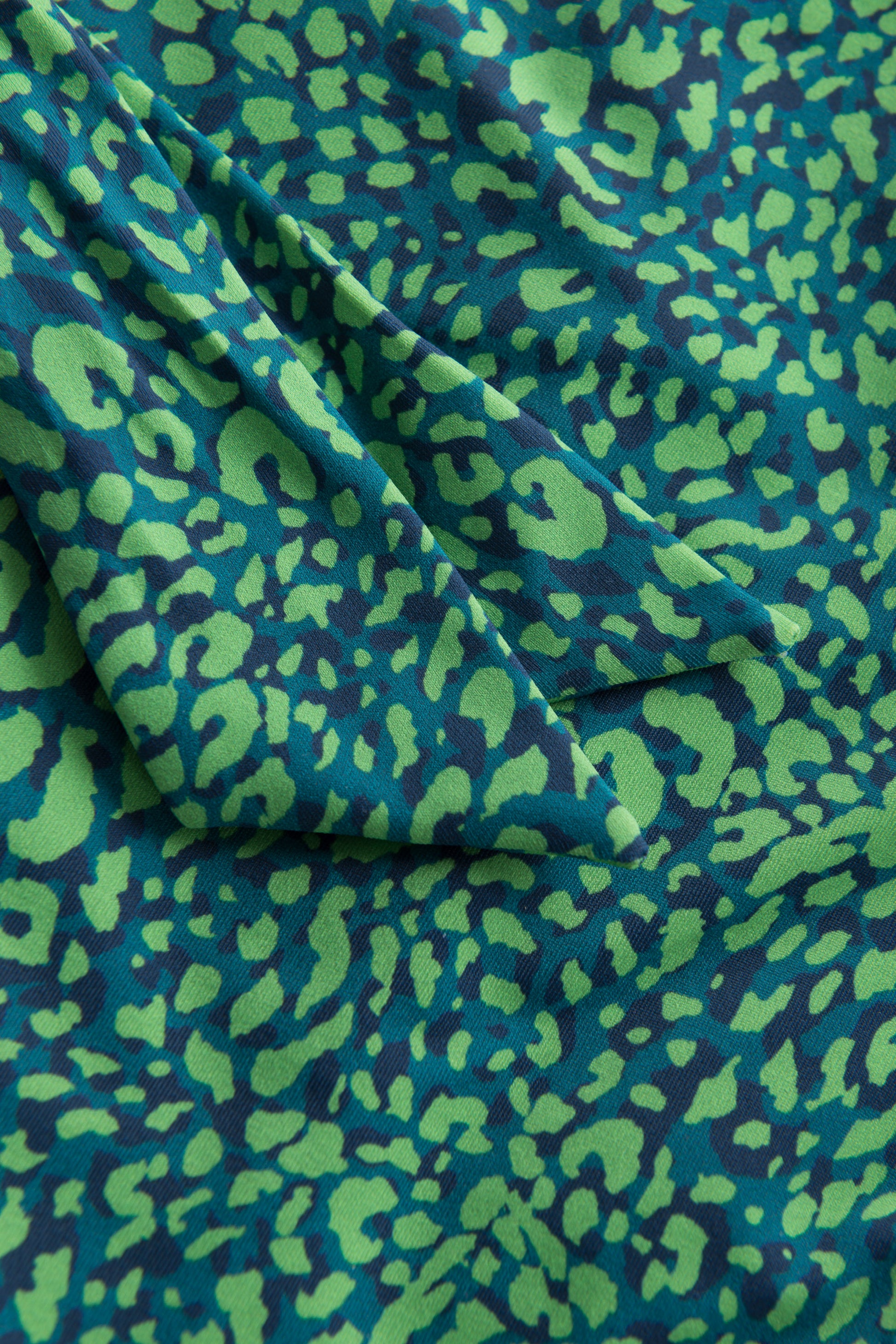 Der minimale Leo-Druck definiert dieses Neckholder Bikini-Top. Das Modell besitzt Spacer-Cups. Zudem können die Träger auf verschiedene Möglichkeiten gebunden bzw. getragen werden.