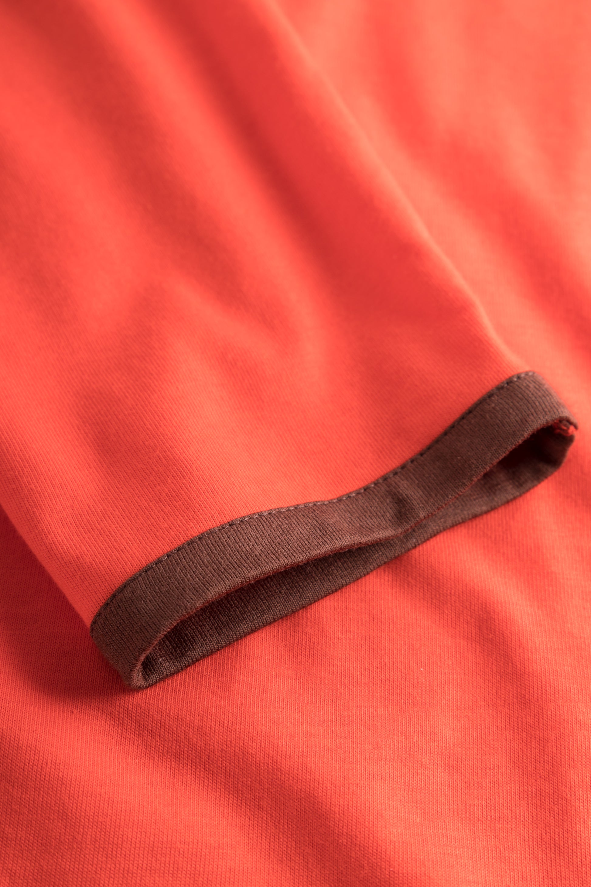 - Bündchen in Kontrastfarbe an Ausschnitt und Ärmelsaum